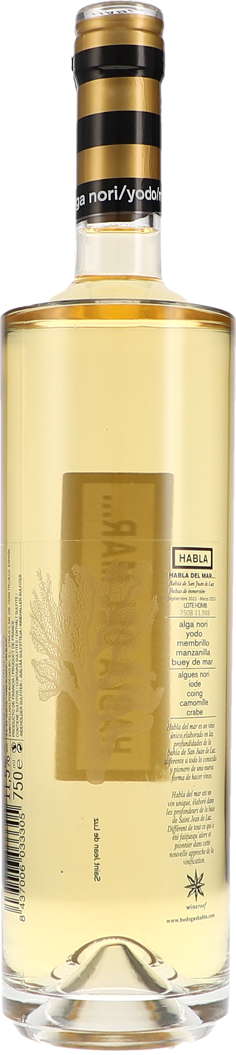 - Die Nase ist vorsichtig fruchtig, eher subtil einzuordnen. Jetzt völlig unverblümt kann man ihm auch reichlich maritime Aromen zuordnen. Frische Algen, Nori-Algenblätter, Jod und Gischt. Auch Austernschale und Weizengras reihen sich hier ein. Für mich zeigt er auch Nuancen von Honig und gelber Früchte. Birne, Quitte, gelbe Äpfel sowie Mirabelle stechen dabei hervor. Frische erfährt er ebenfalls durch Salbei, Menthol und Melisse.