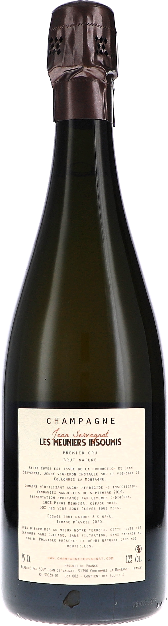 Jean Servagnat Les Meuniers Insoumis, Premier Cru Brut Nature 2020