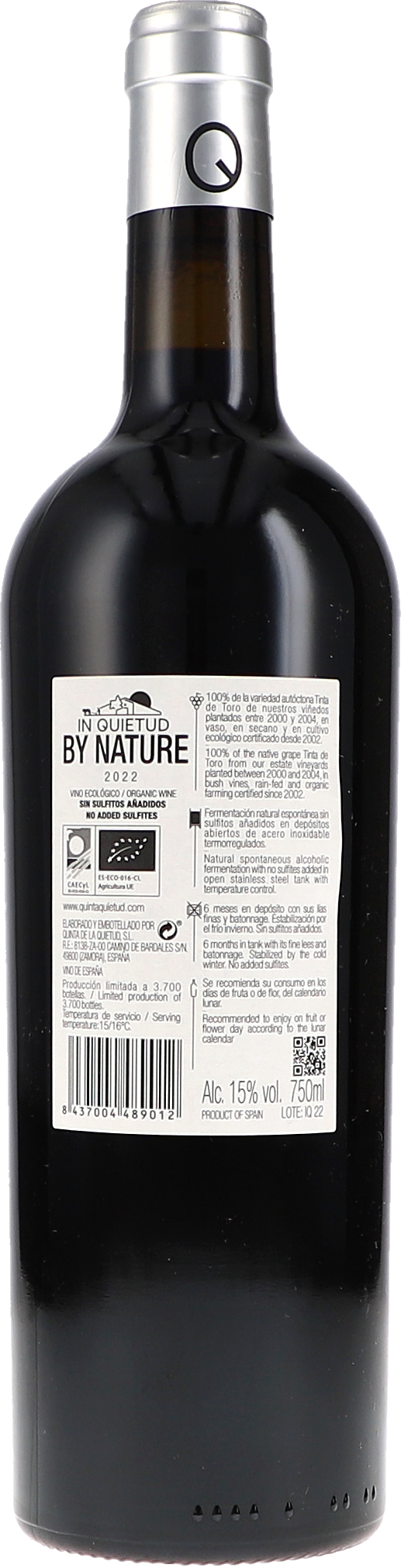 Nicht wenige Rotweine aus Toro sind überreife Bomben. Das ist beim In Quietud By Nature 2022 allerdings gar nicht der Fall. Er hat eine frische Frucht, ebenso reichliche wie feinkörnige Tannine, eine fleischige Textur und er zieht sich saftig durch den Mund. Den Alkoholgehalt von 15% merkt man nicht, so gut ist er eingebunden. Dabei verleugnet dieser Wein seine Rebsorte und Herkunft nicht, denn er hat Power und einen kräftigen Körper, wie es sich für Toro gehört.