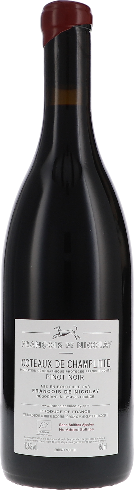 François de Nicolay Coteaux de Champlitte rouge, Sans Sulfites Ajouté AC 2020