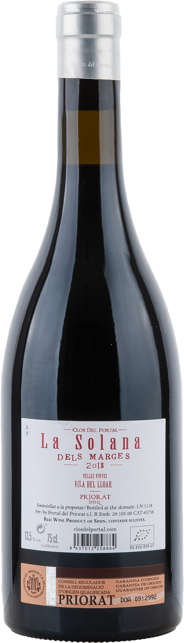 Der La Solana dels Marges stammt aus der Clos des Portal Linie von Alfredo Arribas. Der ehemalige Architekt baute in mühseliger Kleinarbeit alte historische Lagen wieder auf, bevor er sich 2010 aus dem Projekt zurückzog. Der älteste Weinberg La Solana wurde bereits 1911 mit 100% Carignan in Nord-Nordost Ausrichtung gepflanzt. Durch diese atlantische Exposition weht in der Einzellage stets eine frische Brise, die den Weinen trotz des immensen Extraktes der alten Reben ihren gradlinigen und schlanken Ausdruck verleihen. Gewachsen auf dem ortsüblichen Llicorella-Schiefer auf einer Meereshöhe von rund 370 Metern stehen die Reben mit einer Dichte von 5500 Stock/ha. Bis Mitte September von Hand gelesen vergären die nicht entrappten Trauben rund 40 Tage in Holzfässern bevor sie für 18 Monate in französischen 5-700 Liter Fässern ausgebaut werden.