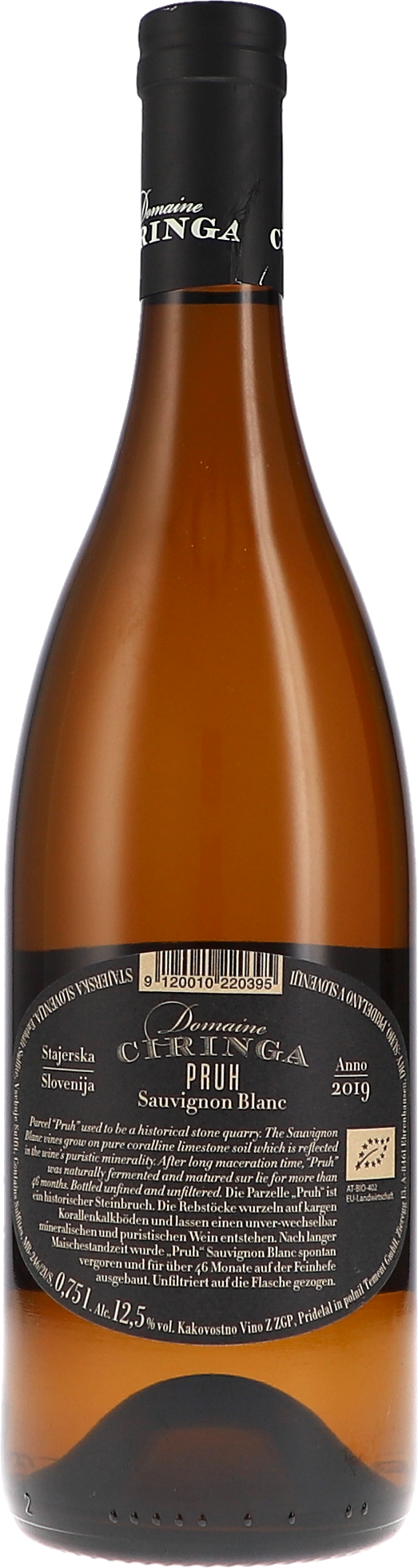 Der Fosilni Breg, der Berg aus Fossilien, ist geprägt durch seine Korallen-Kalkböden und reich an versteinerten Meerestieren. Die Sauvignon blanc Reben der Domaine wachsen auf kargen Böden mit einer Schicht tonreichem Mergel, auch Flysch oder Opok genannt, sowie fruchtbarer Braunerde on top. Die Reben für den 2019 Ciringa Pruh stammen aus einer Parzelle namens Pruh, einem alten Steinbruch in den Weingärten von Ciringa. Die Lage befindet sich direkt neben dem Zieregg auf 340-480 Höhenmetern. Nach langer Maischestandzeit wurde Pruh spontan vergoren, für 46 Monate auf der Feinhefe ausgebaut und ungefiltert auf die Flasche gezogen.