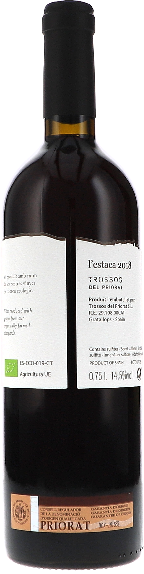 Der biologisch zertifizierte Rotwein ist rebsortenrein aus Garnacha Tinta (Grenache) gekeltert. Das Weingut Trossos del Priorat und dessen Weinberge mit den berühmten Schieferböden des Priorats befinden sich in der Gemeinde Gratallops, im etwas wärmeren Teil des Weinbaugebiets. LEstaca ist im Stil eine typische saftig-weiche und runde Garnacha aus dem Mittelmeerraum. Der Wein reifte 12 Monate in französischen Barriques.